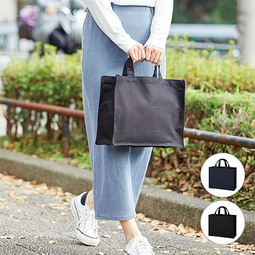 厚みのあるコットン生地のスクエアトート。ベーシックカラーなので使いやすい