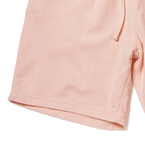CC1466、CC1467などとセットアップとしてもおすすめのスウェットショーツです。新品にはない柔らかな風合いと、絶妙な色合いを実現しました。特にピグメント染め特有の、わずかに色褪せたようなフェード感が、着る人の個性を引き立てます。6.4オンスの適度な厚みと裏起毛の暖かさは、肌寒い季節にぴったりです。リラックスタイムにもトレーニングウェアにもおすすめです!