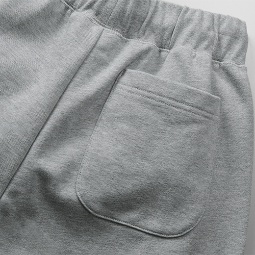 快適さと見た目のバランスにこだわり、エフォートレスな街着として仕上げたスウェットパンツ。Style No.5217-01は、ワタリからひざにかけて程よくゆとりを持たせ、裾をシャーリング仕様にすることで、リラックス感がありながらも部屋着見えしない計算されたシルエットを実現しました。やや内側に配置した片玉縁ポケットとシンプルなヒップポケットが、さりげないデザインアクセントに。オールシーズン使いやすい10.0オンスの裏パイル生地を採用し、同じくシャーリング仕様のStyle No.5245-01とのセットアップも好相性です。脇はぎのない仕様のためプリントも映え、オリジナルデザインを楽しめる一本です。