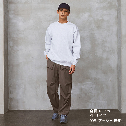 ゆったりとしたシルエットと、ほどよいたまり感が魅力のスウェット。大きめに設計されたアームホールとボリュームのある袖が、リラックスした雰囲気を漂わせます。「マグナムウェイト」の名にふさわしい15.0オンスの極厚生地は、裏起毛仕様で抜群の保温性を発揮。真冬でも頼れる一着です。表糸にオープンエンド糸を使用し、ドライな質感とラフな風合いをプラス。余計な装飾を省いたミニマルなデザインが、ストリートからきれいめまで幅広いスタイルにマッチします。シンプルだからこそ、シルエットの美しさと丁寧な縫製が際立つ一枚です。