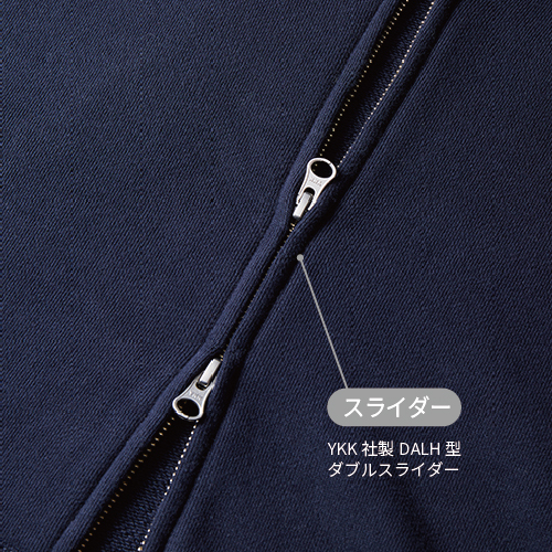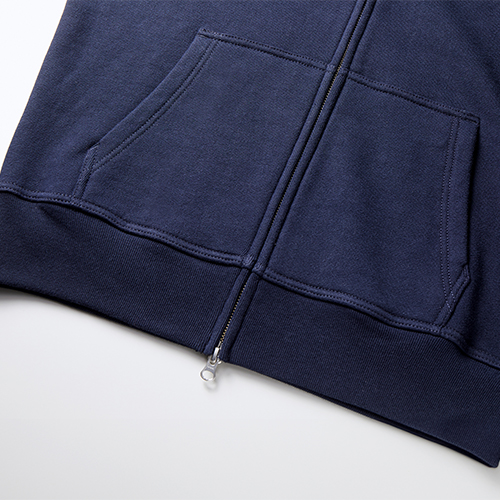 POINTダブルファスナーで脱衣と着まわしを兼ね備えたアウター感覚のジップパーカ