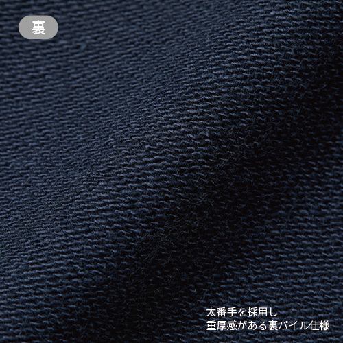 生地感はふっくら、裏糸のパイルは通常よりも太い糸を編み込み重厚感ある生地でどこかクラシックな佇まい