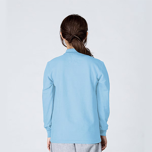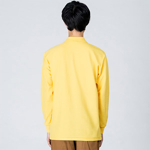 コットンの風合いとポリエステルの耐久性を両立した長袖ポロシャツ。程よい厚みの鹿の子生地で、秋冬のデイリースタイルに最適です。