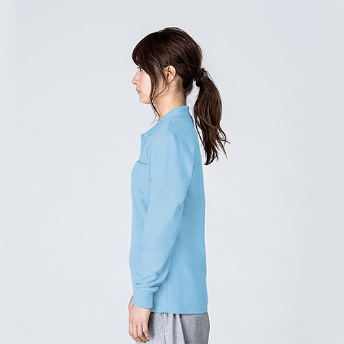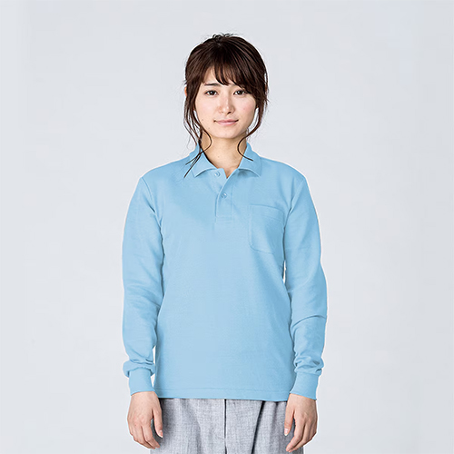 コットンの柔らかな風合いとポリエステルの強度を兼ね備えた、ハイブリッド素材の長袖ポロシャツ。195g/m・5.8オンスの交編鹿の子生地は、ほどよい厚みで秋冬にも快適な着心地です。襟はリブ仕様で、かっちりしすぎずカジュアルな印象に。胸ポケット付きの実用的なデザインで、オフィスカジュアルからデイリーウェアまで幅広く活躍します。定番のポロシャツスタイルを季節に合わせて長袖でアレンジした、万能な一枚です。