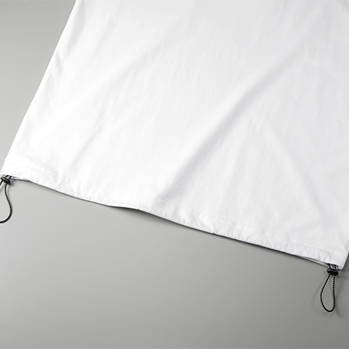 左右の裾口に、アクセントとなるバイカラーのドローコードを配したTシャツです。素材は「コンパクトコーマ糸」を使用しており、毛羽が少なく上質でなめらかな生地を採用。ドロップショルダーで全体的にゆったりとしたシルエットに仕上げており、裾を絞って好みの着こなしをお楽しみいただけます!もちろん裾を絞らずそのまま着ても◎着こなし自由な一枚です。