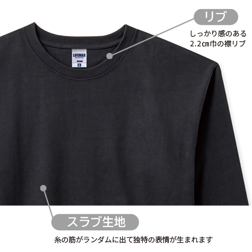 ありきたりなロンTでは物足りないあなたへ!個性を際立たせる、独特な表情が生まれる生地に耐久性を兼ね備えたロングスリーブTシャツ。このTシャツは、糸の筋がランダムに現れるスラブ生地が特徴です。独特な凹凸感が、控えめながらも確かな存在感を放ちます。和のスタイルに自然と溶け込み、着る人の個性を引き立ててくれます。着こなしに深みと遊び心をプラスしたい時に最適な1枚です。