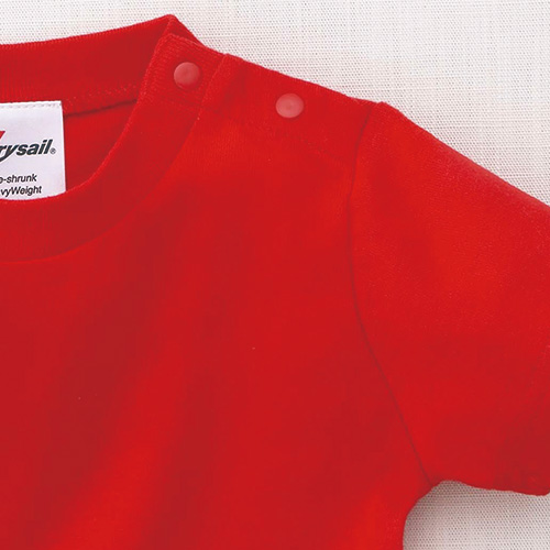 ベビーサイズは肩にスナップ付きで着脱が簡単。セミコーマ糸使用でふんわりしなやかな肌触り