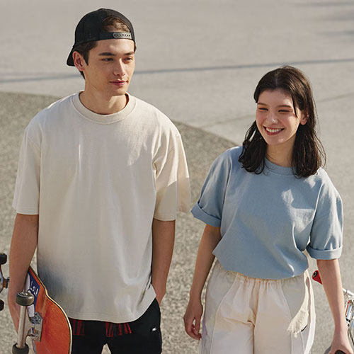 一枚で存在感を出したいスタイリングに適した、スーパーヘビー生地のビッグシルエットTシャツ。人気の00148-HVTと同様の250g/㎡(7.4oz)天竺素材を使用し、透けにくくしっかりとした着用感でロングシーズン活躍します。綿100%(ホワイトのみ綿糸縫製)のタフな14/-糸を採用し、ラフに着てもへたりにくいのが特長。襟はダブルステッチ仕様で首元に程よいボリュームを持たせ、シンプルながらもコーディネートの軸になる仕上がりです。ゆとりのあるビッグシルエットは一枚着はもちろん、ストリートやレイヤードスタイルにも対応。5色・4サイズ展開で、用途やターゲットに合わせた展開が可能なNEWモデルです。