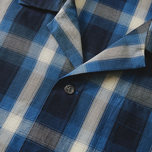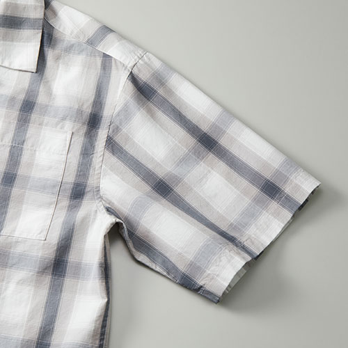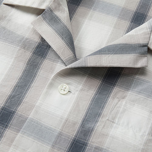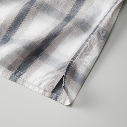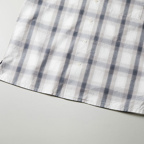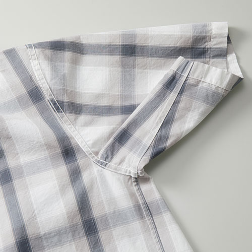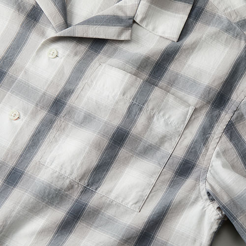 気負わず羽織れて、街着として自然に馴染むチェック柄コットンシャツ。トーン・オン・トーンの落ち着いたチェック柄は、スケーターやグランジといったアメリカンカルチャーの空気感を残しつつ、スタイリングを選ばず使いやすいのが魅力です。製品洗いを施すことで生地のハリを抑え、着始めからやわらかく体になじむ風合いに仕上げました。オープンカラー仕様により、Tシャツの上からラフに羽織っても窮屈さがなく、季節の変わり目にも活躍。左胸ポケットやシェル調ボタンが程よいアクセントになり、縫製は折り伏せ縫いやダブルチェーンステッチを採用することで、日常使いでも安心できる耐久性を確保しています。着回しやすさとタフさを兼ね備えた、長く付き合える一枚です。